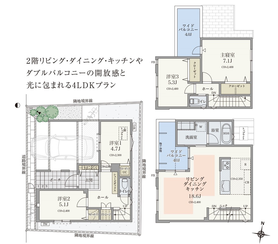 ゆとりある空間を光と風で満たす開放的な4LDK。