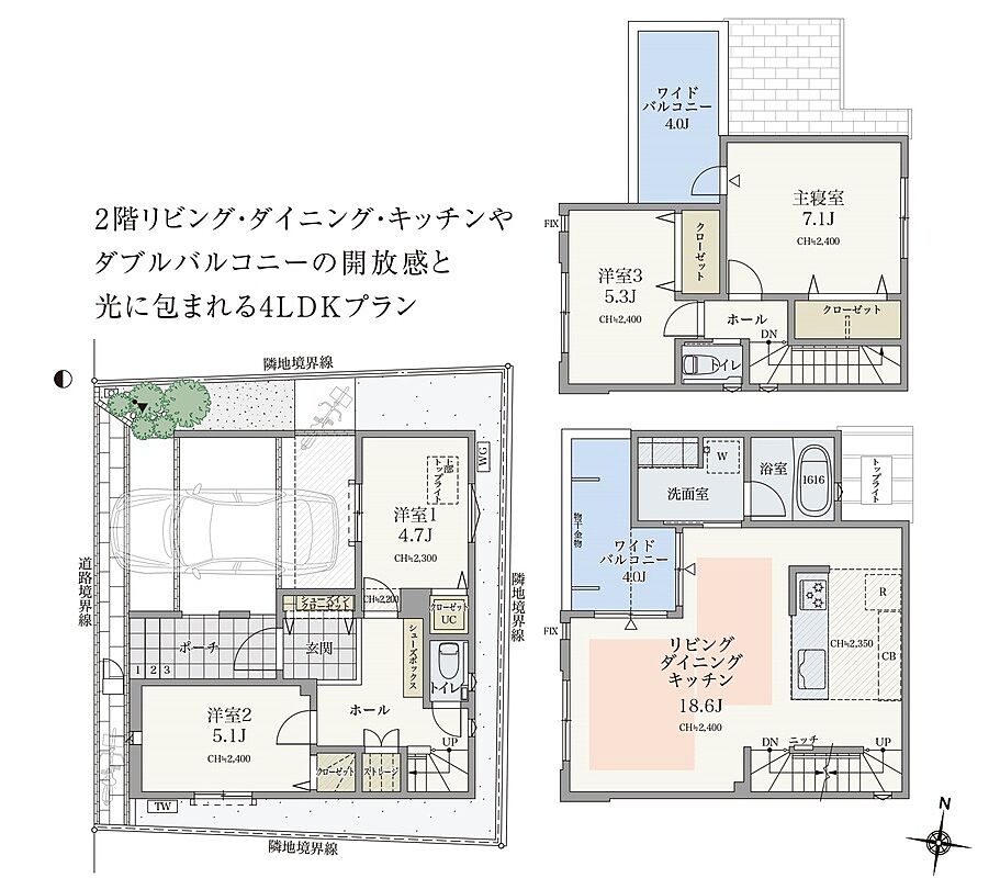 魅力2 前面道路約6mの開放感/4LDK