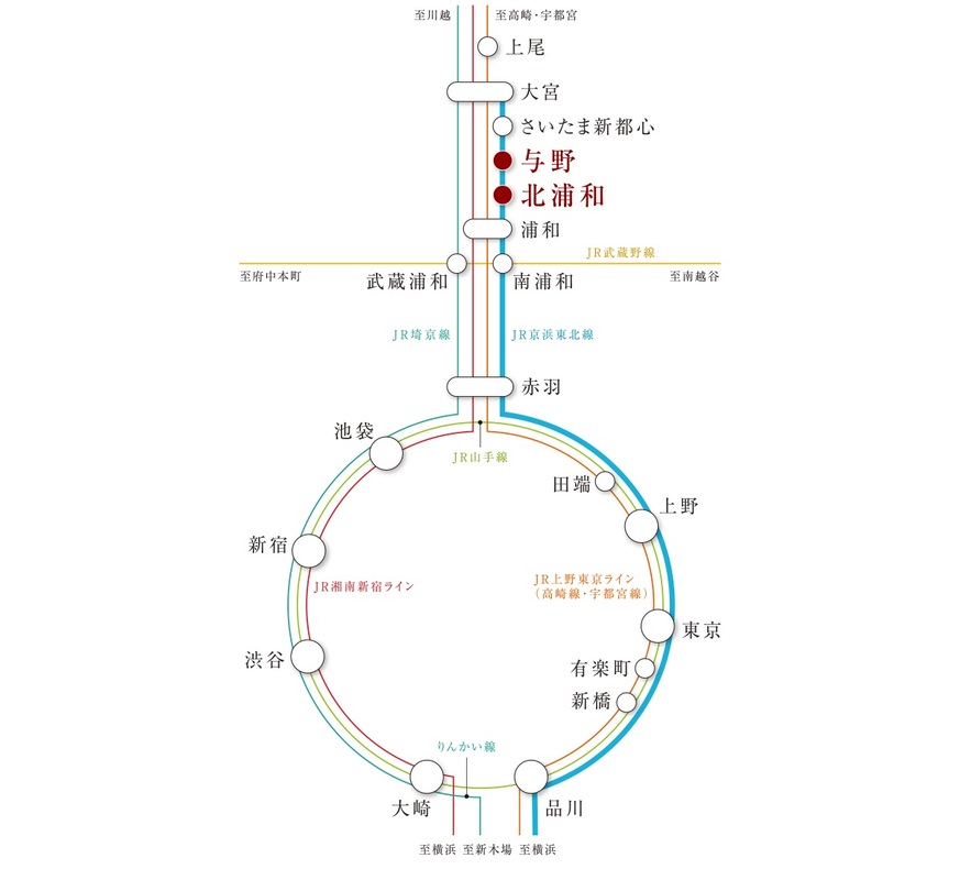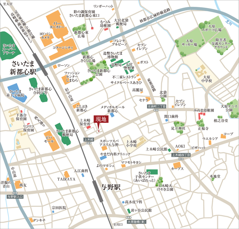 JR京浜東北・根岸線「与野」駅 徒歩8分 JR京浜東北・根岸線「さいたま新都心」駅 徒歩13分 JR埼京線「北与野」駅 徒歩17分 |