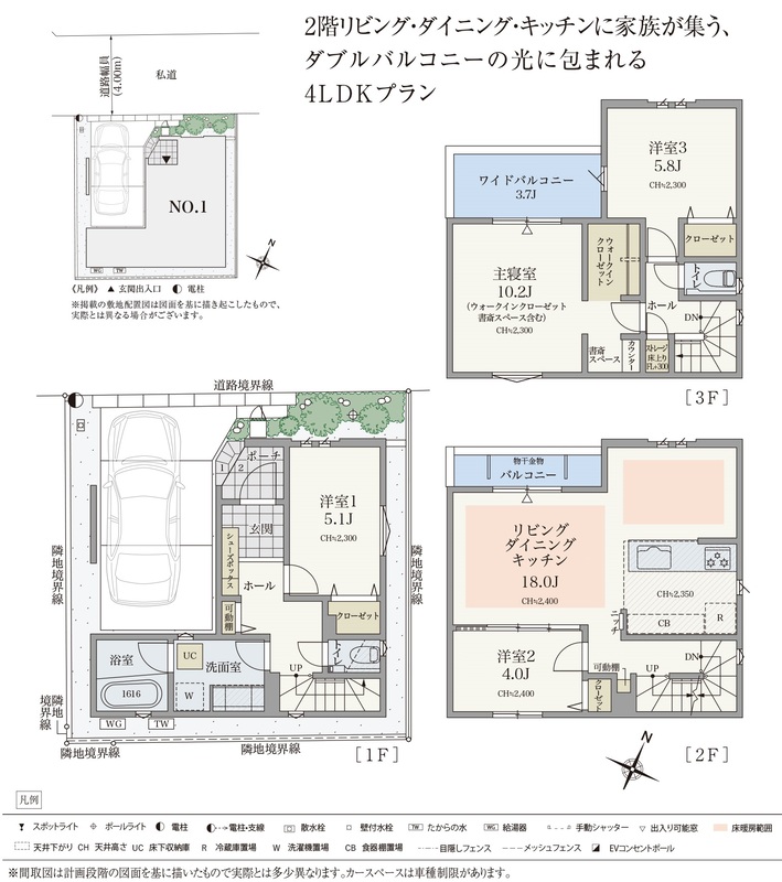 魅力2 3階建て/4LDKでくつろげるプランニング