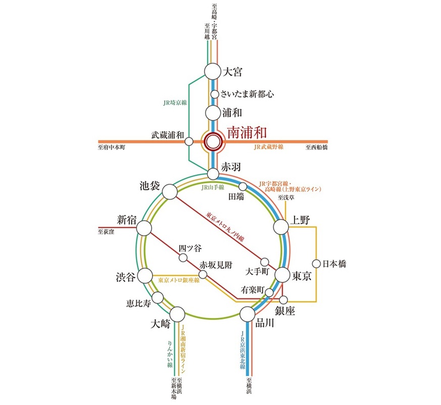 JR京浜東北・根岸線「南浦和」駅 徒歩12分~13分 JR武蔵野線「武蔵浦和」駅 徒歩15分 JR高崎線「浦和」駅 徒歩17分~18分 |