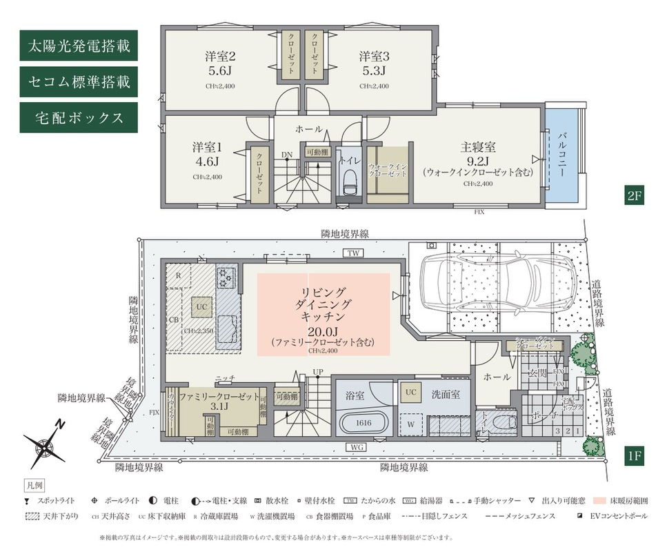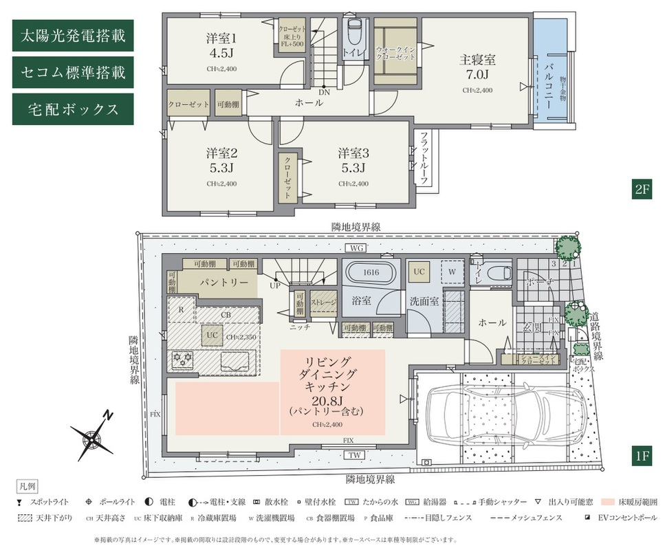 セコム標準搭載、太陽光発電システム採用など安心の仕様を採用しました。