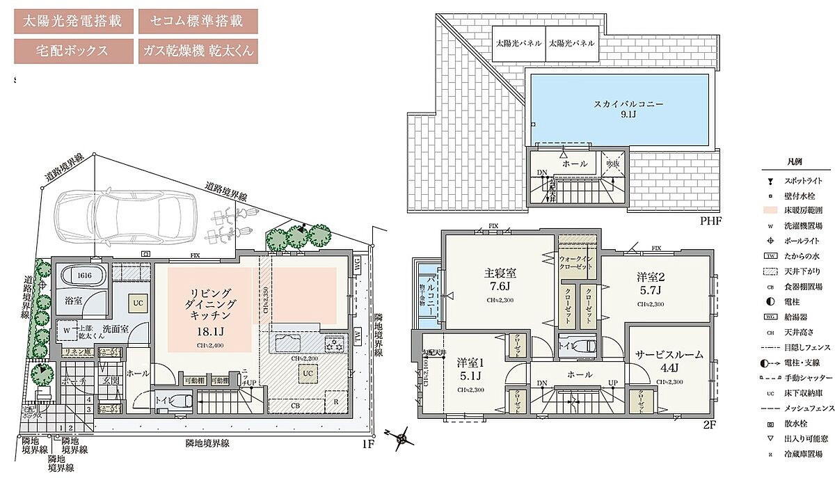 開放的な角地に、ワンランク上の邸宅が誕生。約9.1帖のスカイバルコニー、18帖超LDKなど、ご家族がゆったりと寛げる住まいです。多彩な収納や充実の設備も!