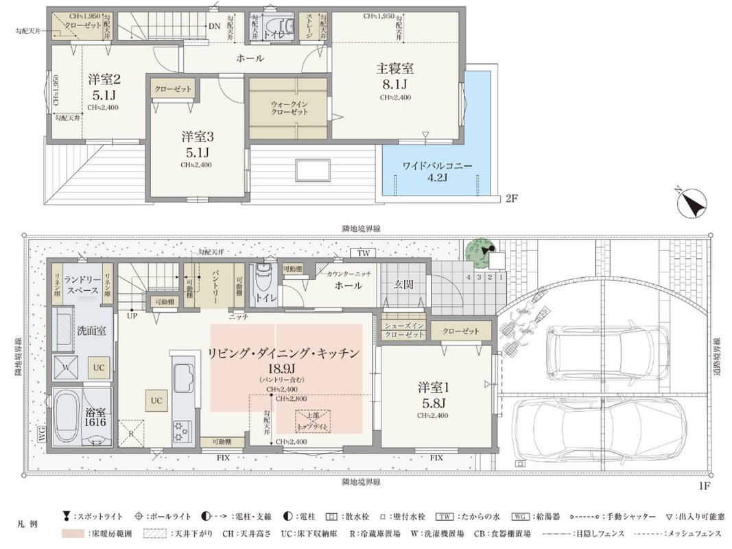 魅力2 4LDK+SIC+WIC+大型パントリー付!LDK広々18帖超&2台駐車可能