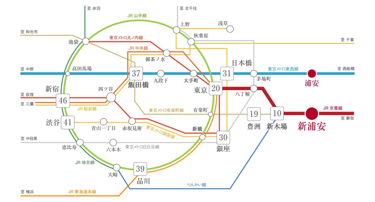 2駅2路線利用可能 JR京葉線「新浦安」駅徒歩15分/東京メトロ東西線「浦安」駅24分