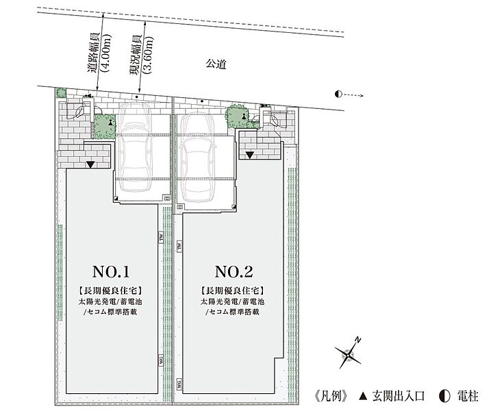 | 駐車場 | 1台 | 道路の幅員 | 北西側4.00m道路 アスファルト舗装(私道負担:有※1) |