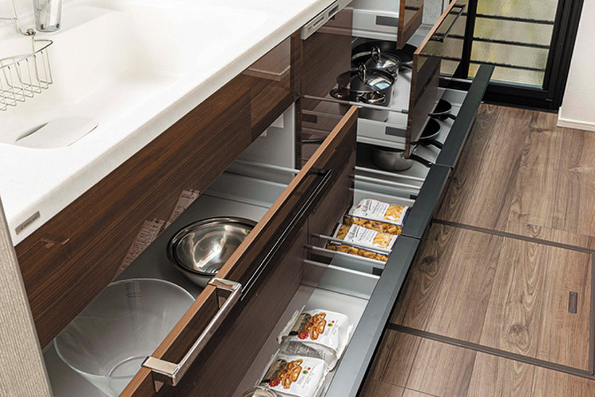 - リビングは明るく、キッチンは広く開放的にしたいなど、住まう人の様々な想いを実現したレーベンホームビルドの「レーベンプラッツ」シリーズ。もっと心地良く、もっと便利に。使う人、時、場所を想定し、住まいの随所にこだわった住まいづくりを行っています。