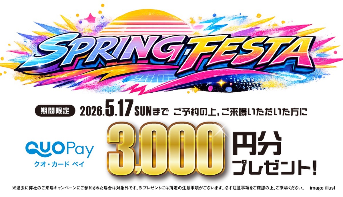 2026年5月17日(日)までにご予約の上ご来場いただいた方に QUOカードPay3、000円分プレゼント ※詳しくは注意事項をご確認ください。