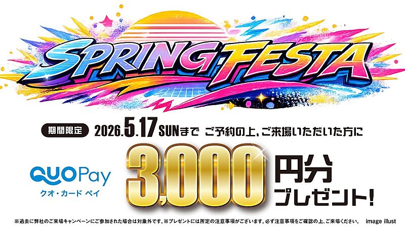 <来場特典> 2026年5月17日(日)までにご予約の上ご来場いただいた方に QUOカードPay3、000円分プレゼント ※詳しくは注意事項をご確認ください。