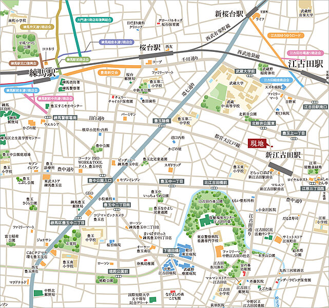都営大江戸線「練馬」駅 徒歩14分 西武池袋線「桜台」駅 徒歩15分 西武新宿線「沼袋」駅 徒歩17分 |