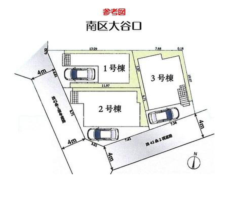 | 駐車場 | 1台 | 道路の幅員 | 道路幅:4m、アスファルト舗装、南側4m 公道、南側4m 公道 |