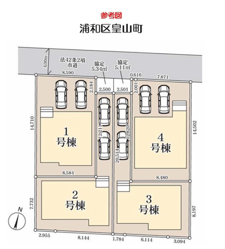 | 駐車場 | 2台 | 道路の幅員 | 道路幅:4m、アスファルト舗装、北 4m 公道 |