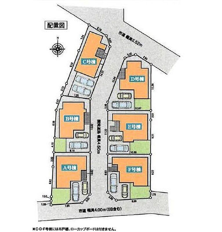 | 駐車場 | 2台 | 道路の幅員 | 道路幅:4m~5.5m、アスファルト舗装、中央側4.5m、北東側5.52m市道、南側4.0m市道 |