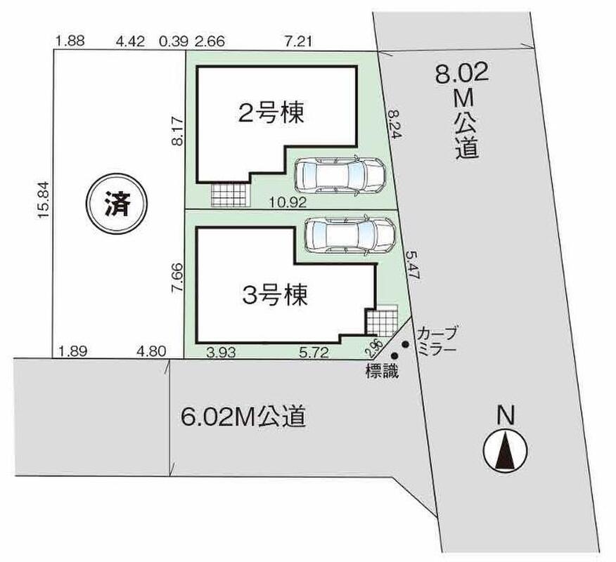| 建物面積 | 80.32m2・84.46m2 | 土地面積 | 84.95m2・85.02m2 |