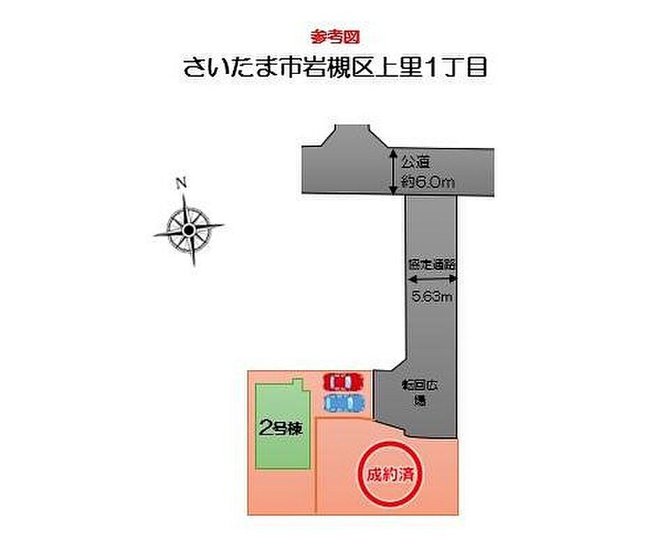 | 駐車場 | 2台 | 道路の幅員 | 道路幅:6m、アスファルト舗装、北6.0m公道 |