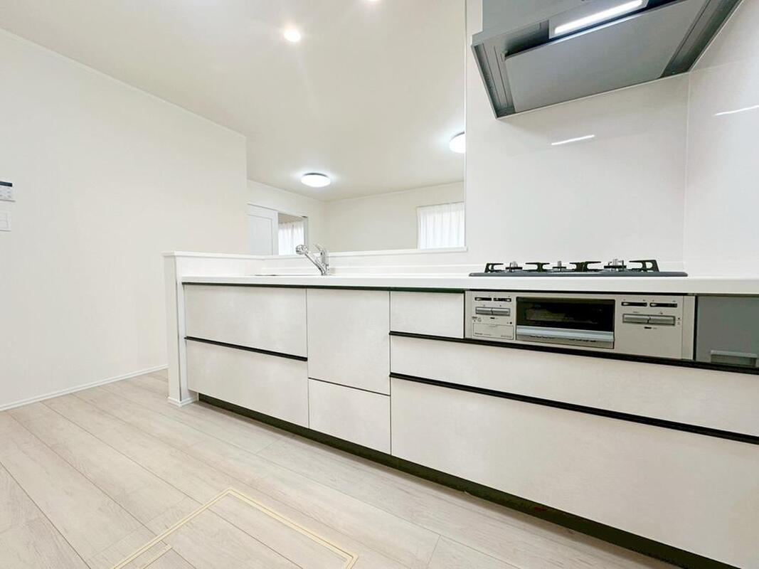 収納力豊富な爽やかなシステムキッチンを用意しております。床下収納もございますので、キッチンスペースをすっきりとお使い頂けます。