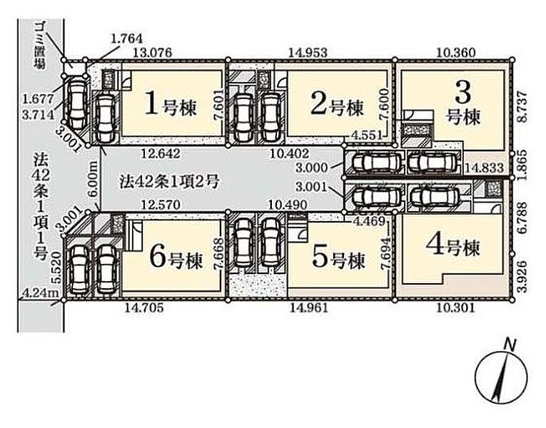 | 駐車場 | 2台 | 道路の幅員 | 道路幅:4.2m・6m、アスファルト舗装、南 6m 私道、西 4.24m 公道 |