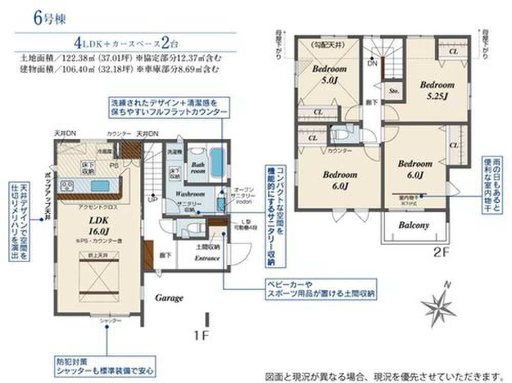 6号棟 間取り 4LDK 価格 4490万円 建物面積 106.4m2 土地面積 122.38m2 -