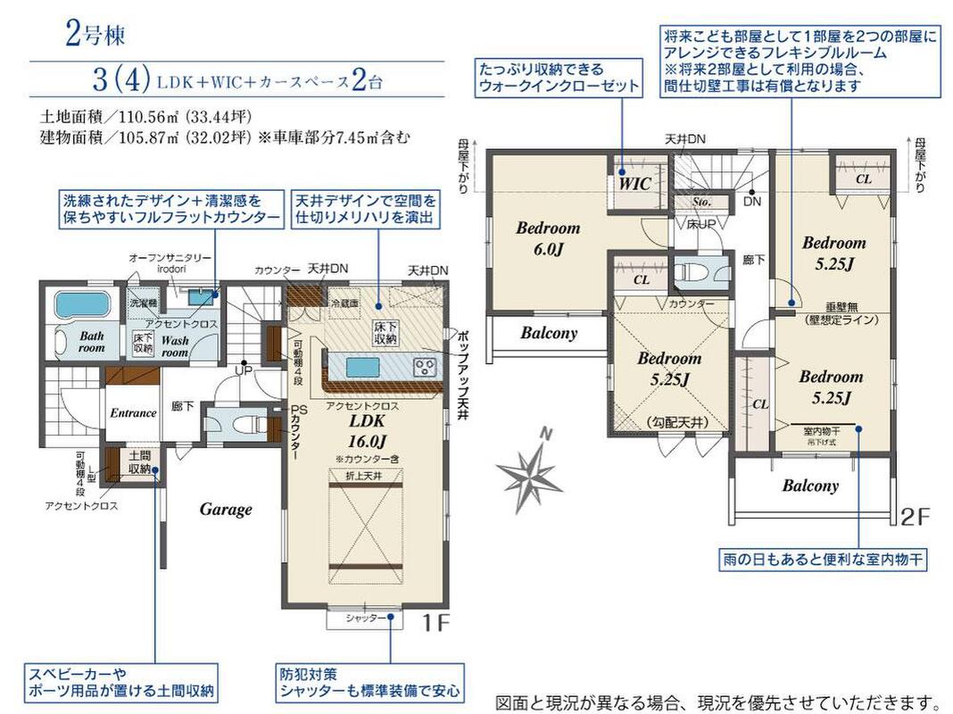 2号棟 間取り 3LDK 価格 4590万円 建物面積 105.87m2 土地面積 110.56m2 -