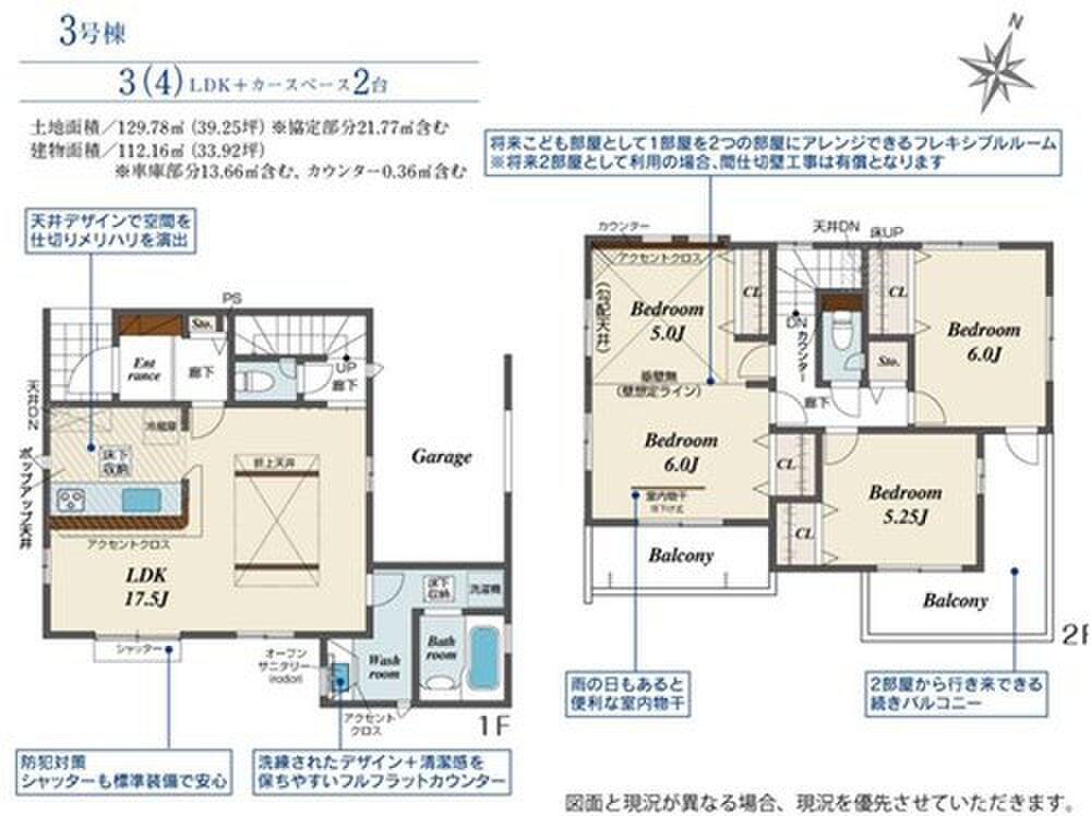 3号棟 間取り 3LDK 価格 3798万円 建物面積 112.16m2 土地面積 129.78m2 -