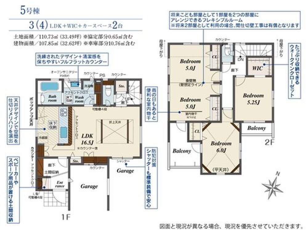 5号棟 間取り 3LDK 価格 4490万円 建物面積 107.85m2 土地面積 110.73m2 -