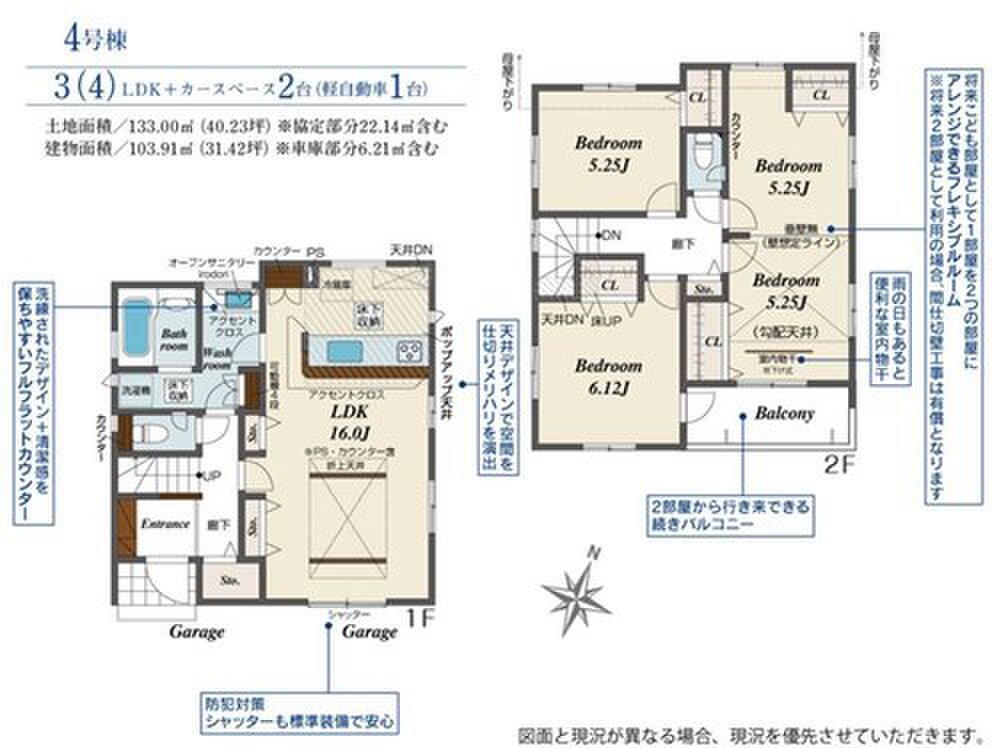 4号棟 間取り 3LDK 価格 4190万円 建物面積 103.91m2 土地面積 133m2 -