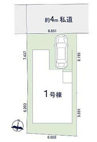 | 駐車場 | 1台 | 道路の幅員 | 道路幅:4m、アスファルト舗装、北側4m私道、他備考欄参照 |