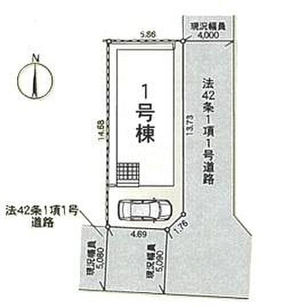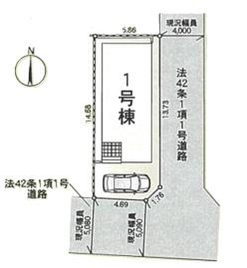 | 駐車場 | 1台 | 道路の幅員 | 道路幅:4m・5m、アスファルト舗装、東側:4m公道、南側:5m公道 |