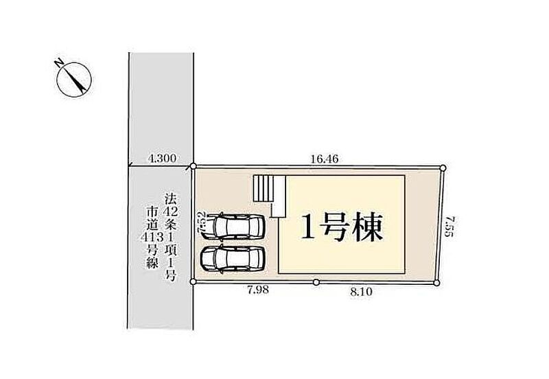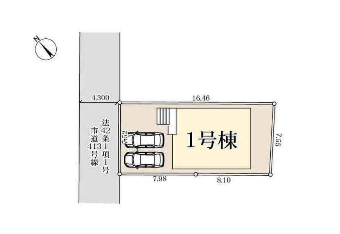 | 駐車場 | 2台 | 道路の幅員 | 道路幅:4.3m、アスファルト舗装、北西 4.3m 公道 |