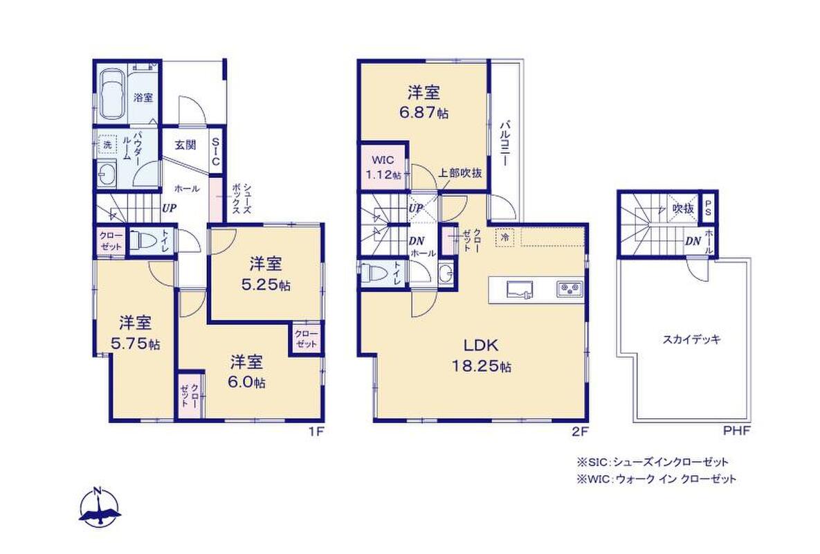 ガスコンロ3口・都市ガス・全居室収納・カースペース1台・ルーフバルコニー・WIC・SIC 等!