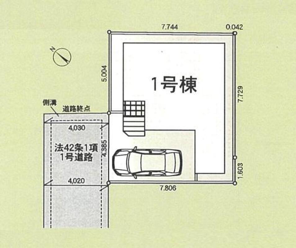| 駐車場 | 1台 | 道路の幅員 | 道路幅:4m、アスファルト舗装、北西:4m公道 |