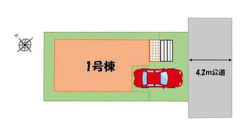 | 駐車場 | 1台 | 道路の幅員 | 道路幅:4.2m、アスファルト舗装、南東側:4.2m公道 |