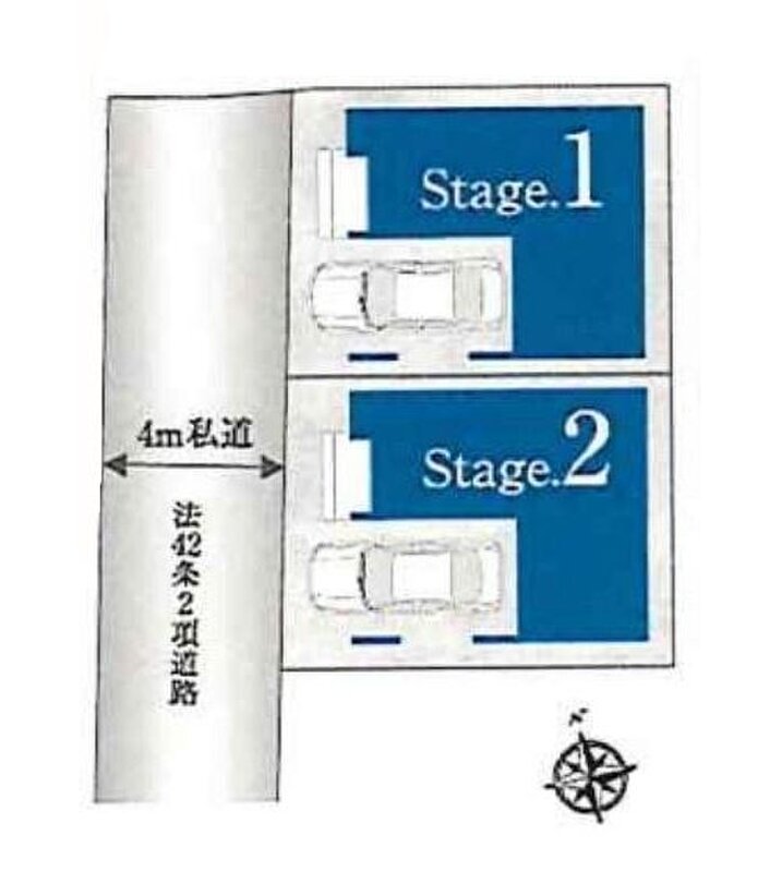 | 駐車場 | 1台 | 道路の幅員 | 道路幅:4m、アスファルト舗装、 西 4m 私道 |