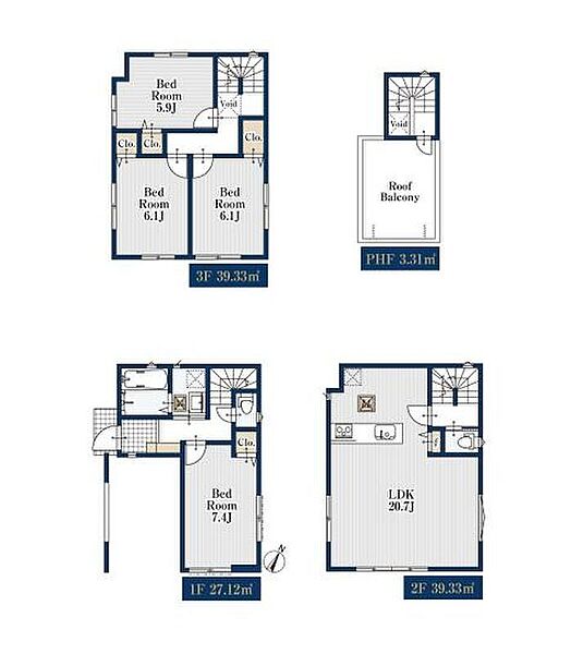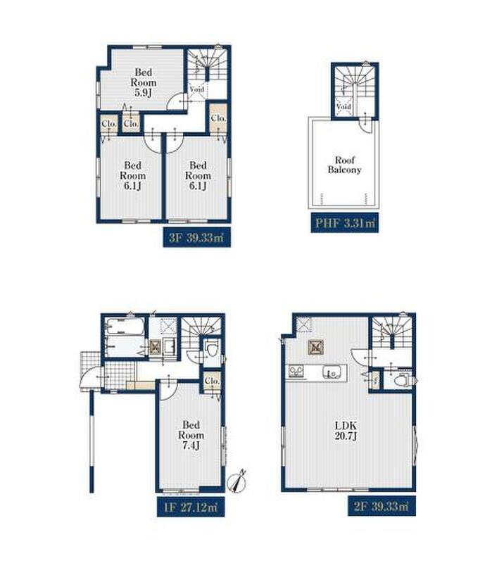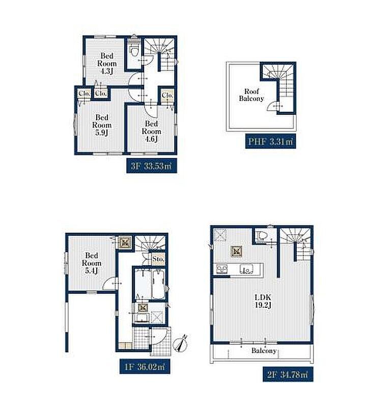 | 間取り | 4LDK | 建物構造 | 木造サイディング貼スレート葺3階建て |