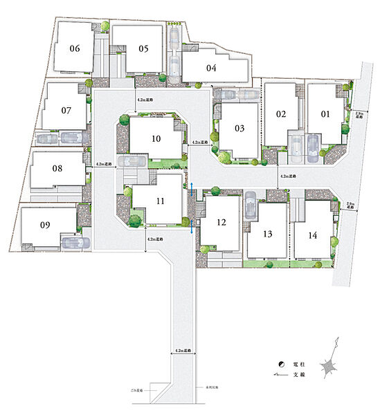 14邸が織り成す街には、出迎えてくれているようなあたたかな照明を採用。