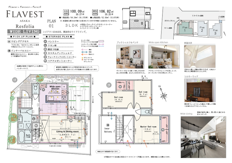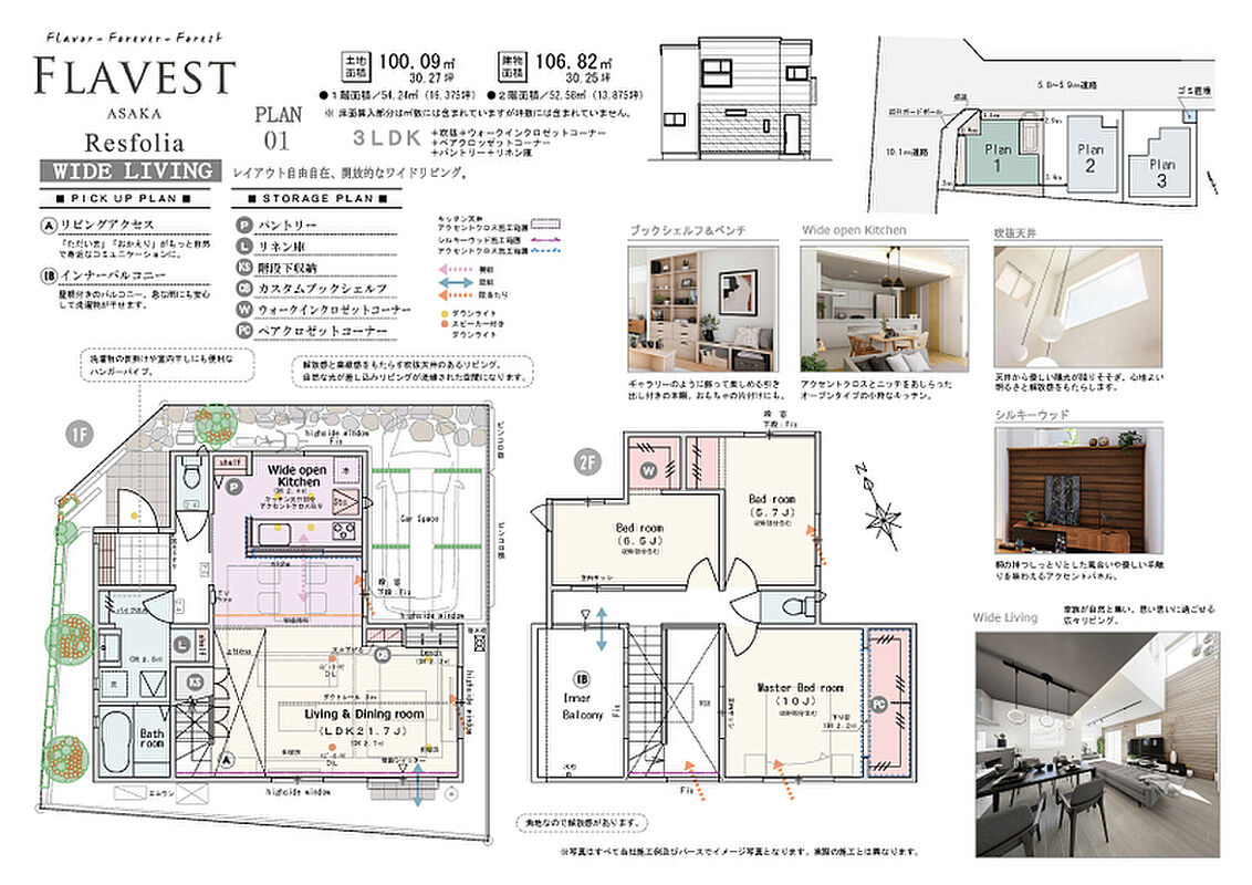 | 間取り | 3LDK+吹抜+ウォークインクロゼットコーナー+ペアクロゼットコーナー+パントリー+リネン庫 ~ 3LDK+ステージヌック+吹抜+3ウォークインクロゼットコーナー+パントリー+リネン庫 | 建物構造 | 木造2階建(在来工法) |