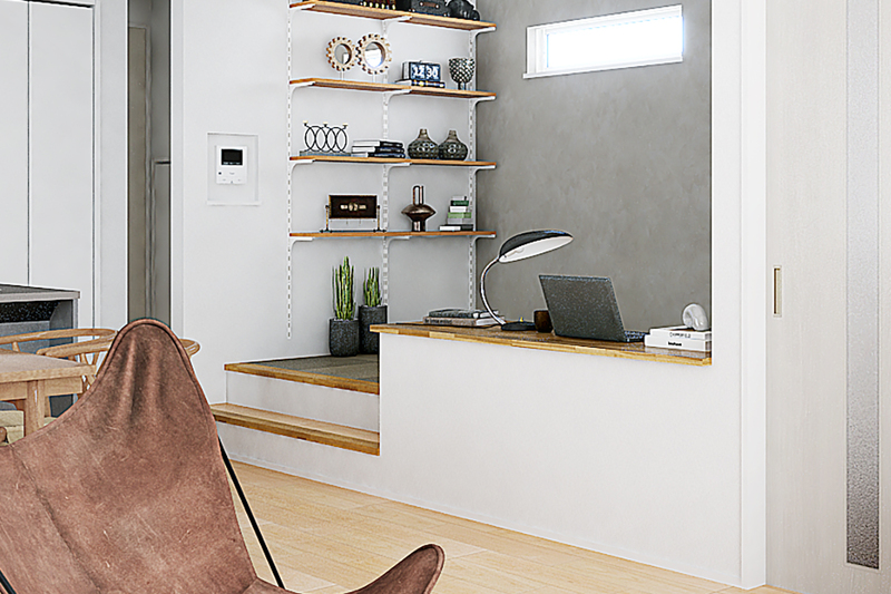 段差空間には、家族みんなで使える堀机カウンターを設置。読書をし...