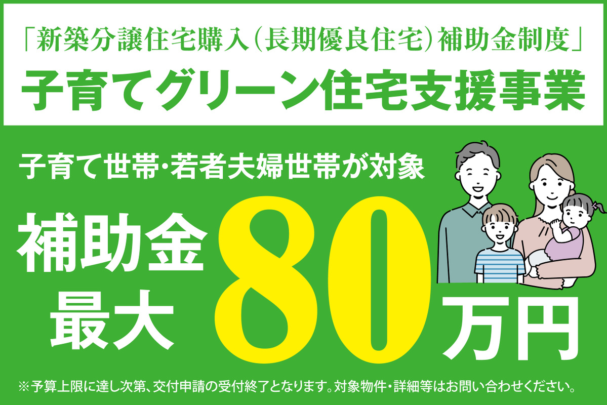 ●「子育てグリーン住宅支援事業」最大80万円の補助対象物件です。