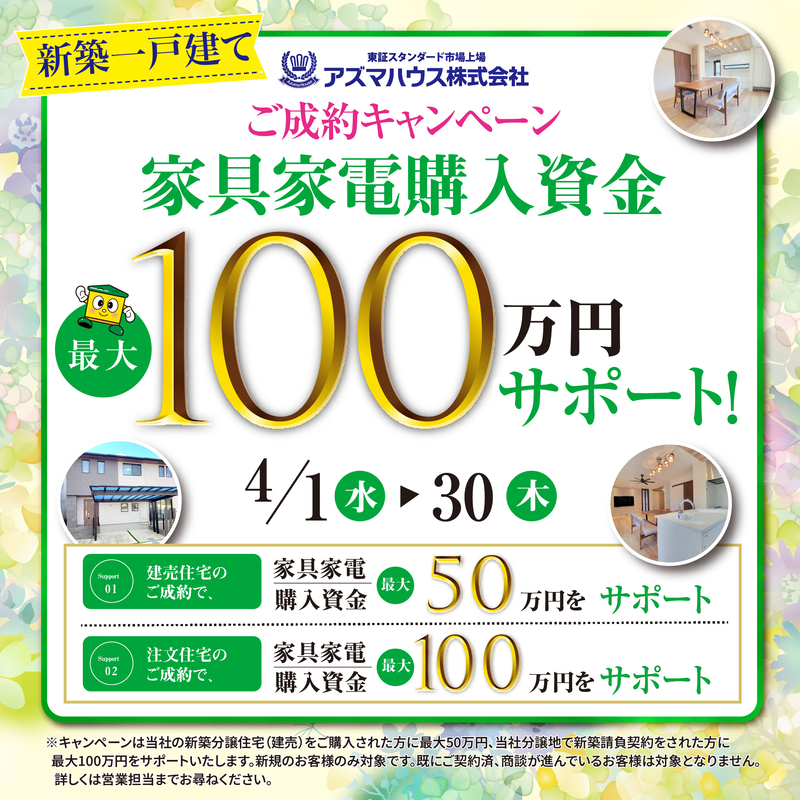 「ご成約キャンペーン 家具家電購入資金 最大50万円サポート」実施中!