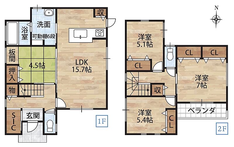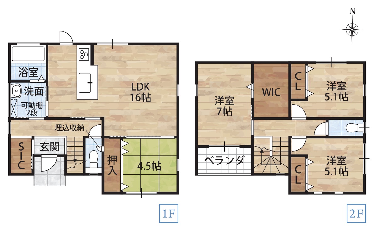 LDK15帖超と和室4.5帖!シューズクローゼットに家族みんなの靴や傘、ベビーカーを収納できて散らかりがちな玄関もすっきりきれいに!4LDK・オール電化・お車2台駐車可能です!