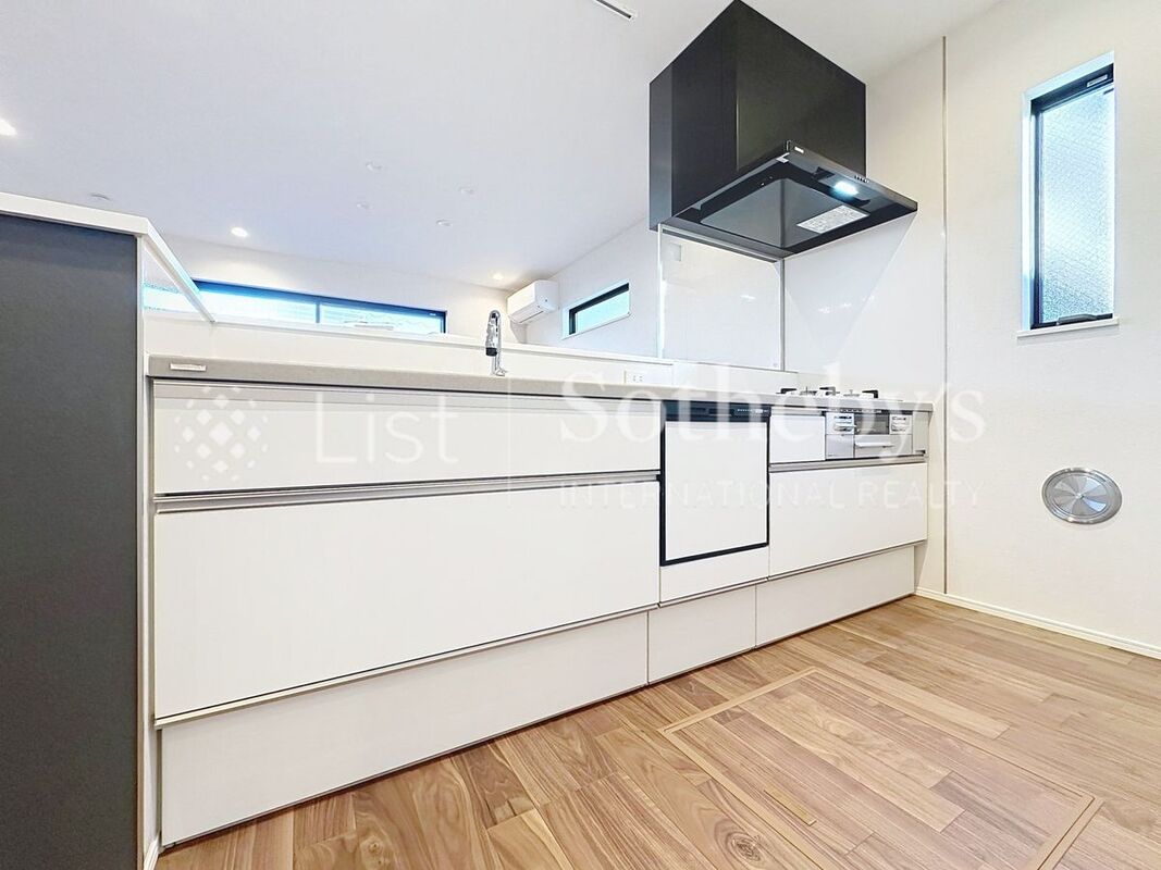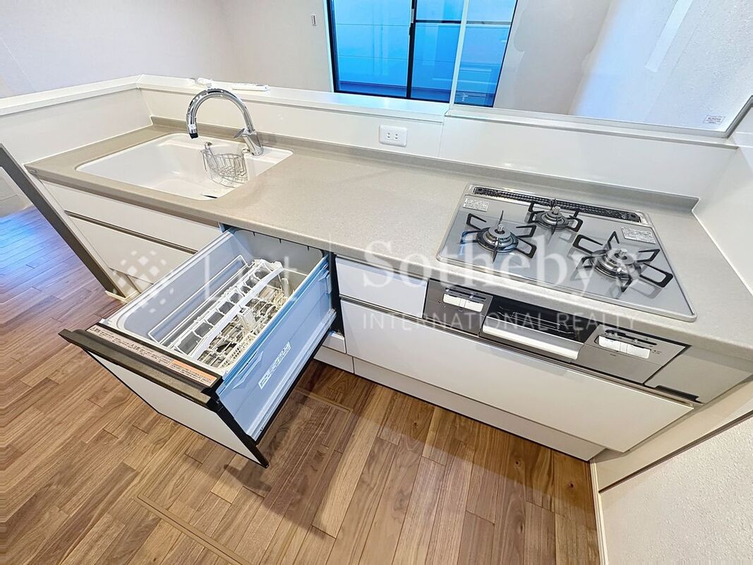 ・床暖房・食洗機・タッチレス水栓・浴室乾燥機・マルチエアコン・電動シャッター・ウェルカム洗面台・スマートフォンやタグキーで施解錠を行うファミロック採用・乾太くん標準装備・宅配ボックス他