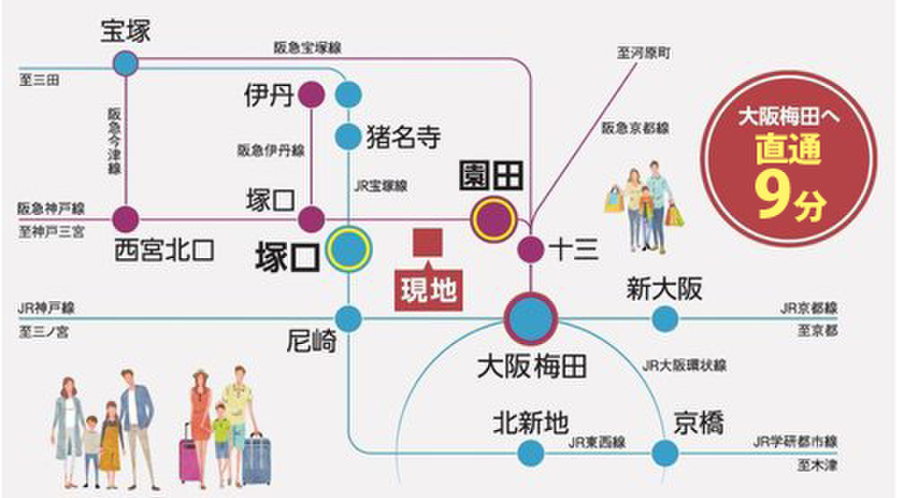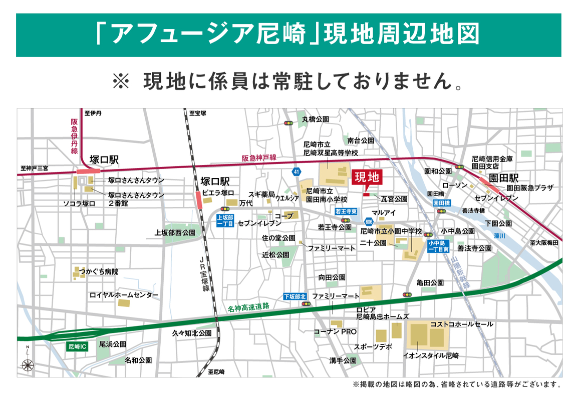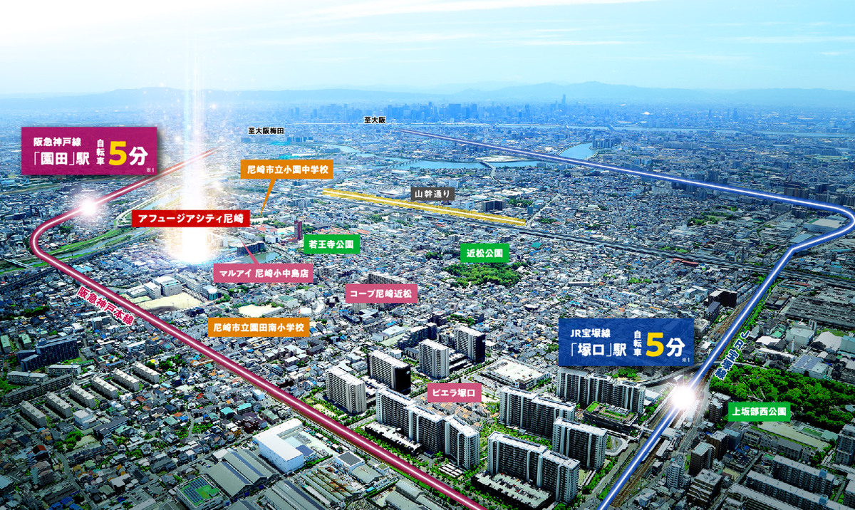 阪急神戸本線「園田」駅 徒歩16分 JR福知山線「塚口」駅 徒歩18分~19分 阪急神戸本線「塚口」駅 徒歩30分 |