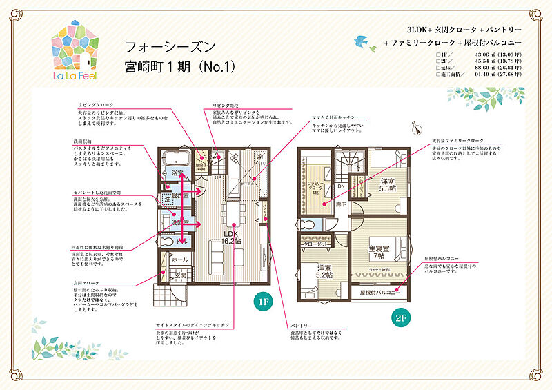 ララフィール宮崎町1期 No.2 間取り 3LDK 価格 3498万円 建物面積 89.41m2 土地面積 106.07m2 -