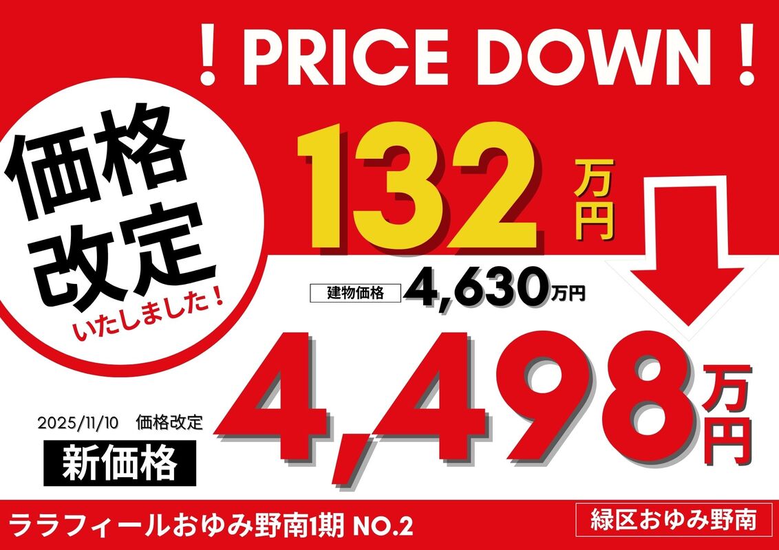 | 販売価格 | 4,498~4,580万円 | 最多価格帯 | - |