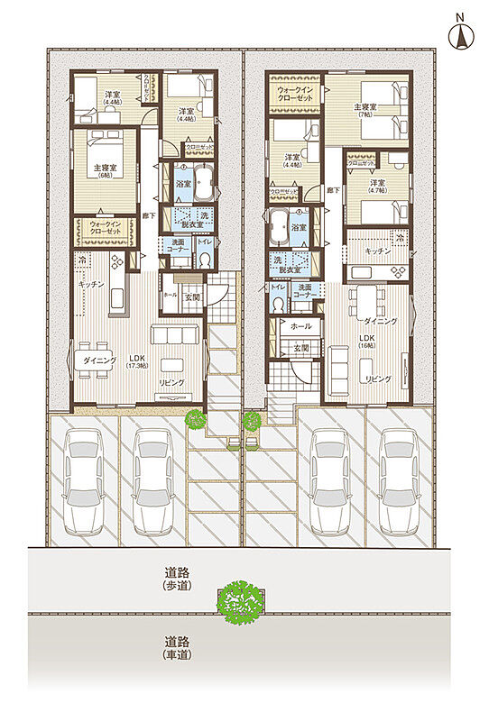 - ※完成予想図やCG合成画像は、門塀・植栽・庭・外観等、実際とは多少異なる場合があります。