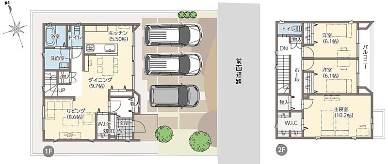 - ※完成予想図やCG合成画像は、門塀・植栽・庭・外観等、実際とは多少異なる場合があります。
