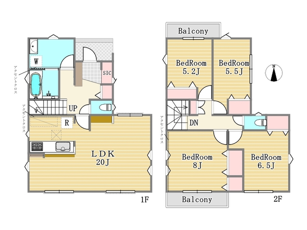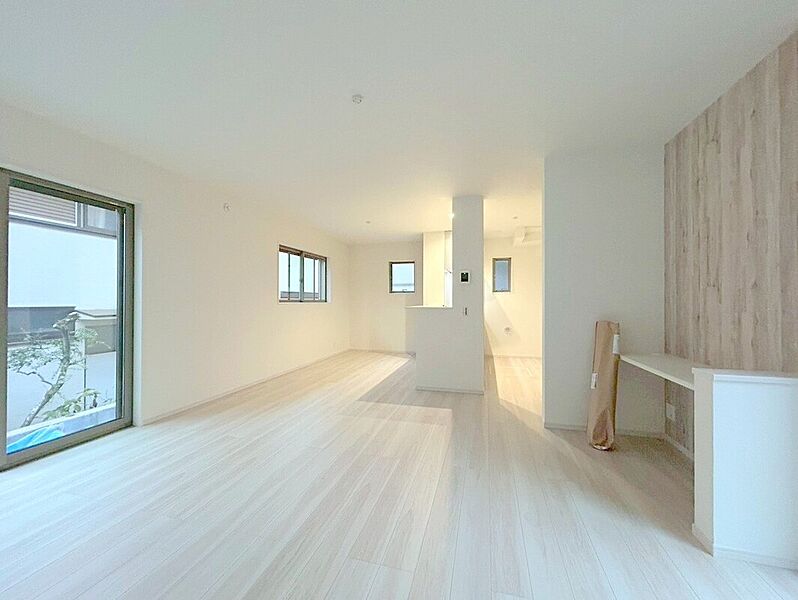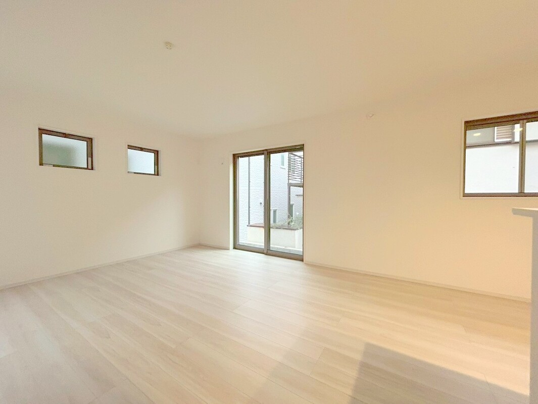 20帖ある広々LDK!リビングを見合わせる対面キッチン採用!SIC完備で玄関周りもスッキリ!南側・北側の2面バルコニーで明るい室内