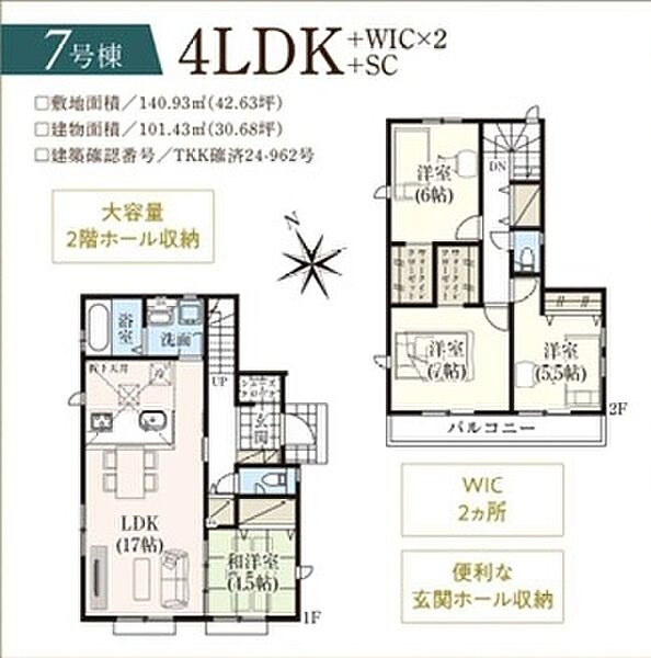 7号棟(ご成約済み) 間取り 4LDK 価格 未定 建物面積 101.43m2 土地面積 140.93m2