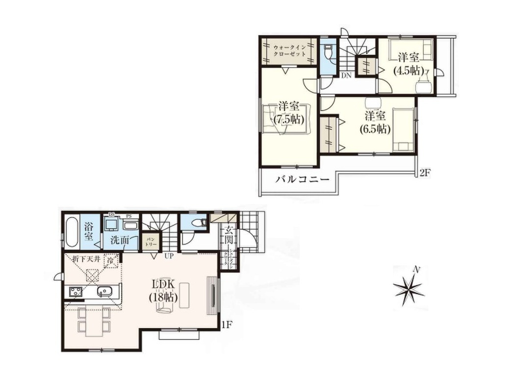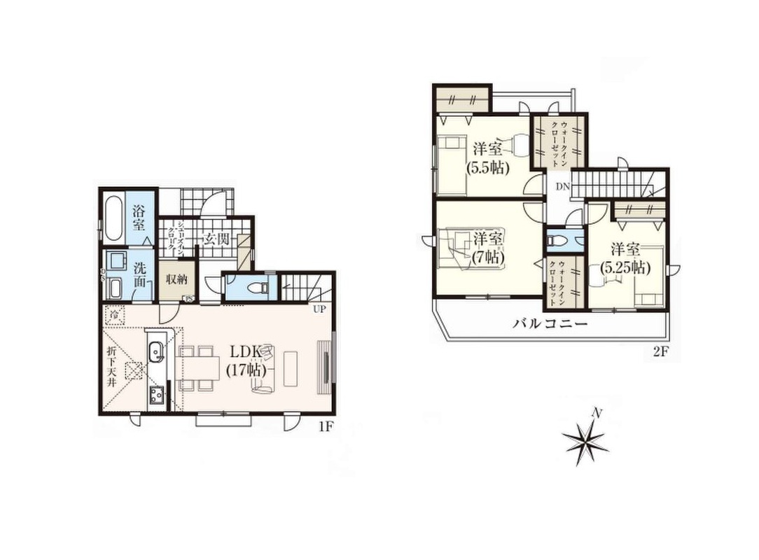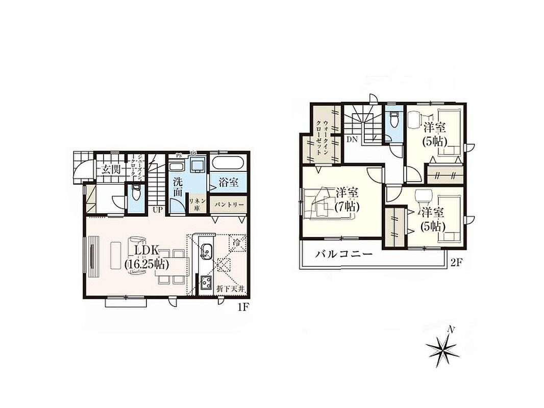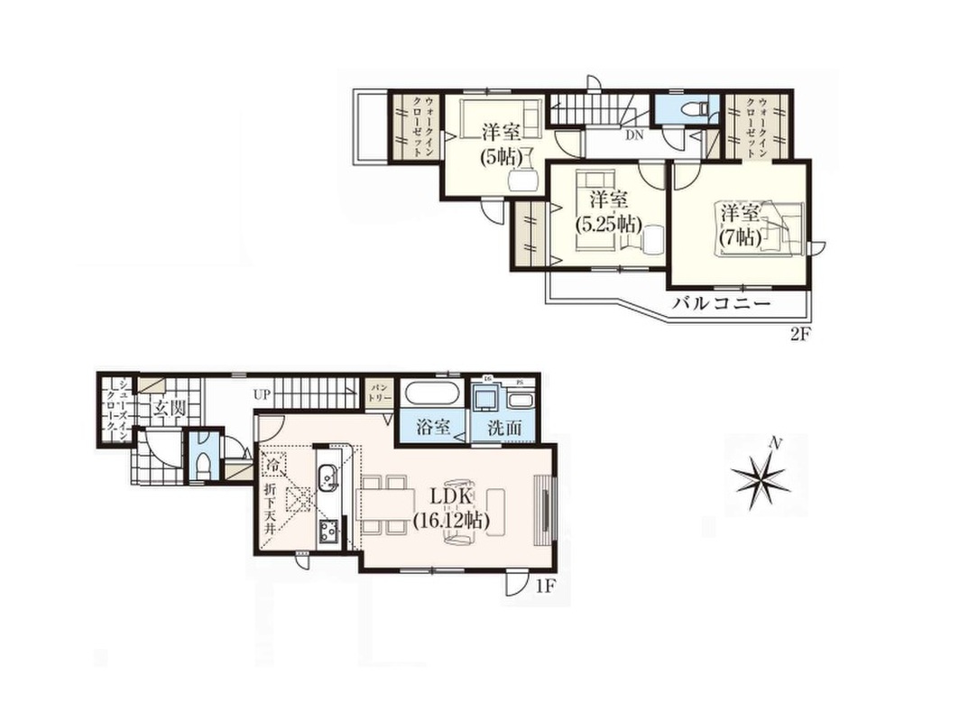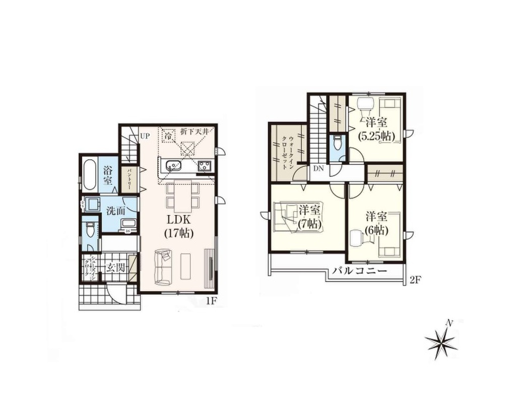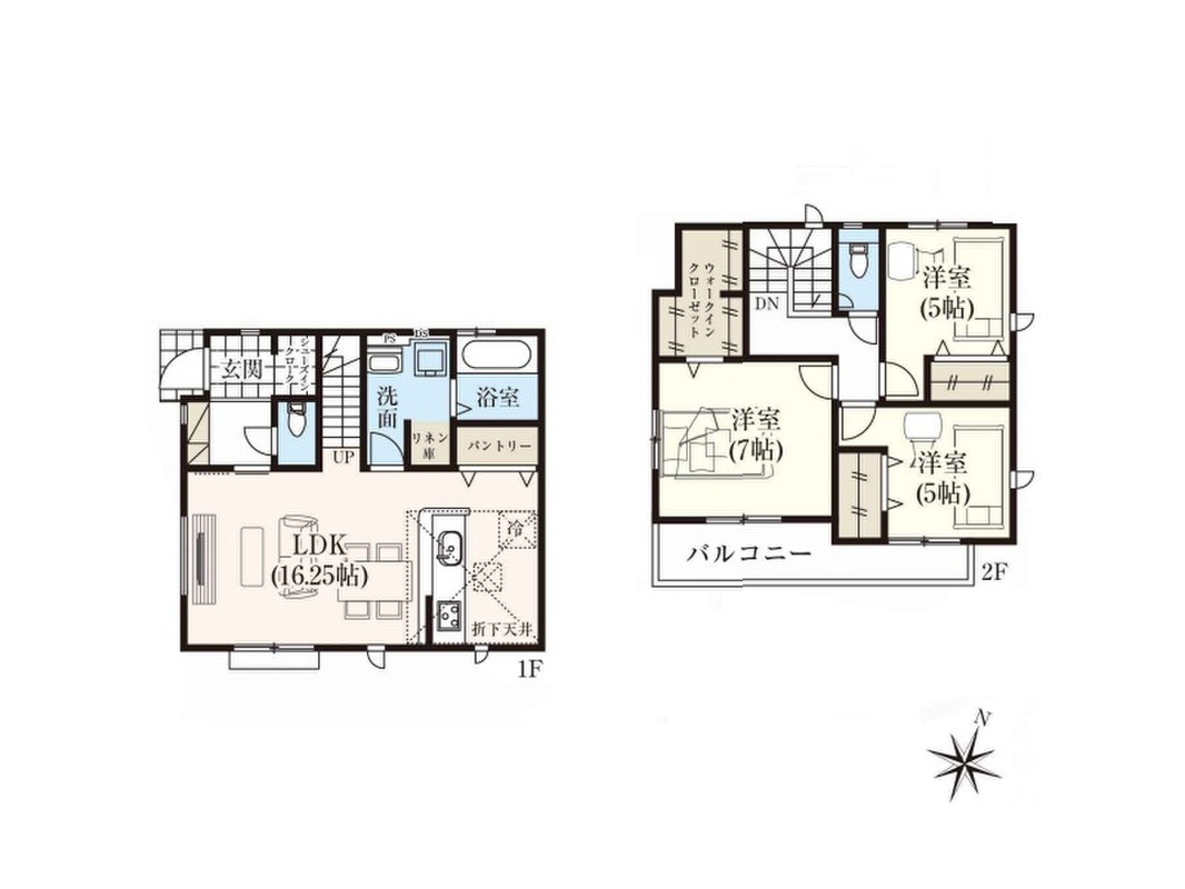 2号棟 間取り 3LDK 価格 5980万円 建物面積 90.67m2 土地面積 115.03m2 -