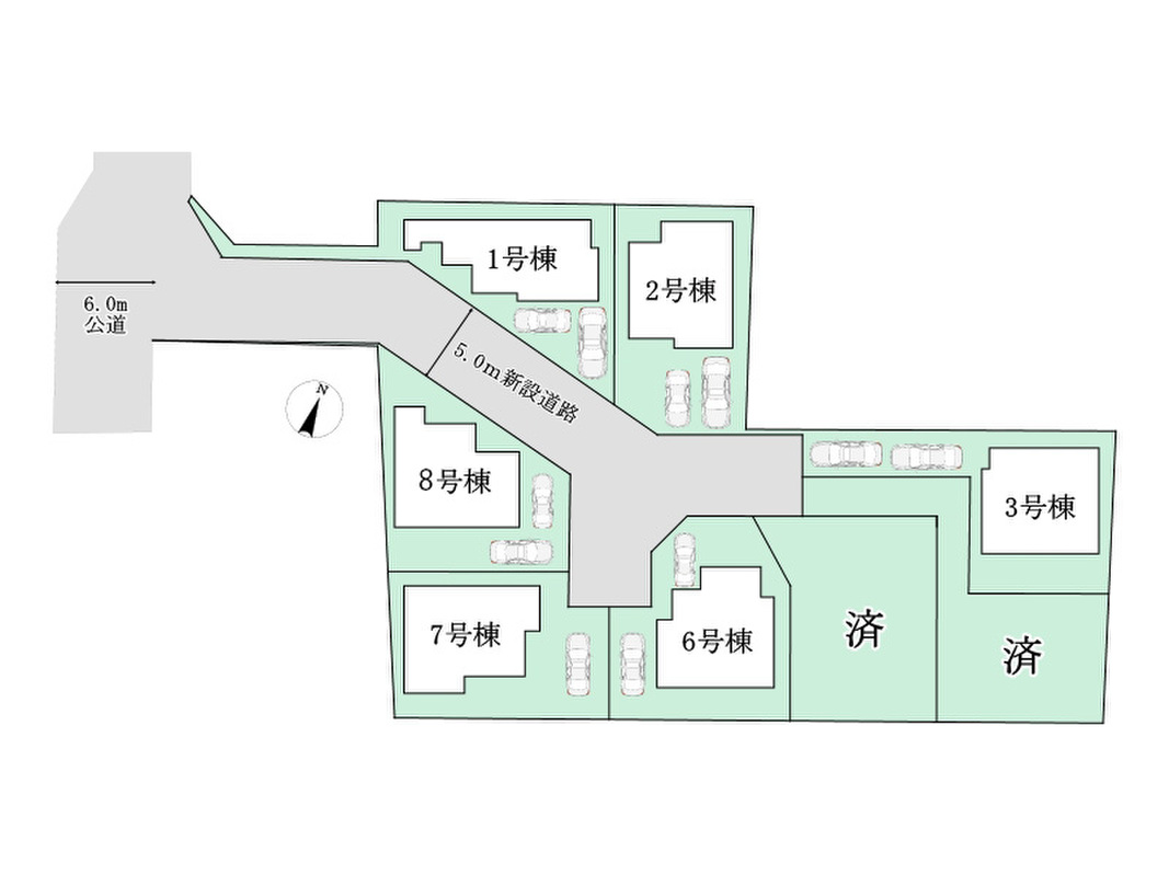 | 駐車場 | 2台 | 道路の幅員 | 5m新設道路 |